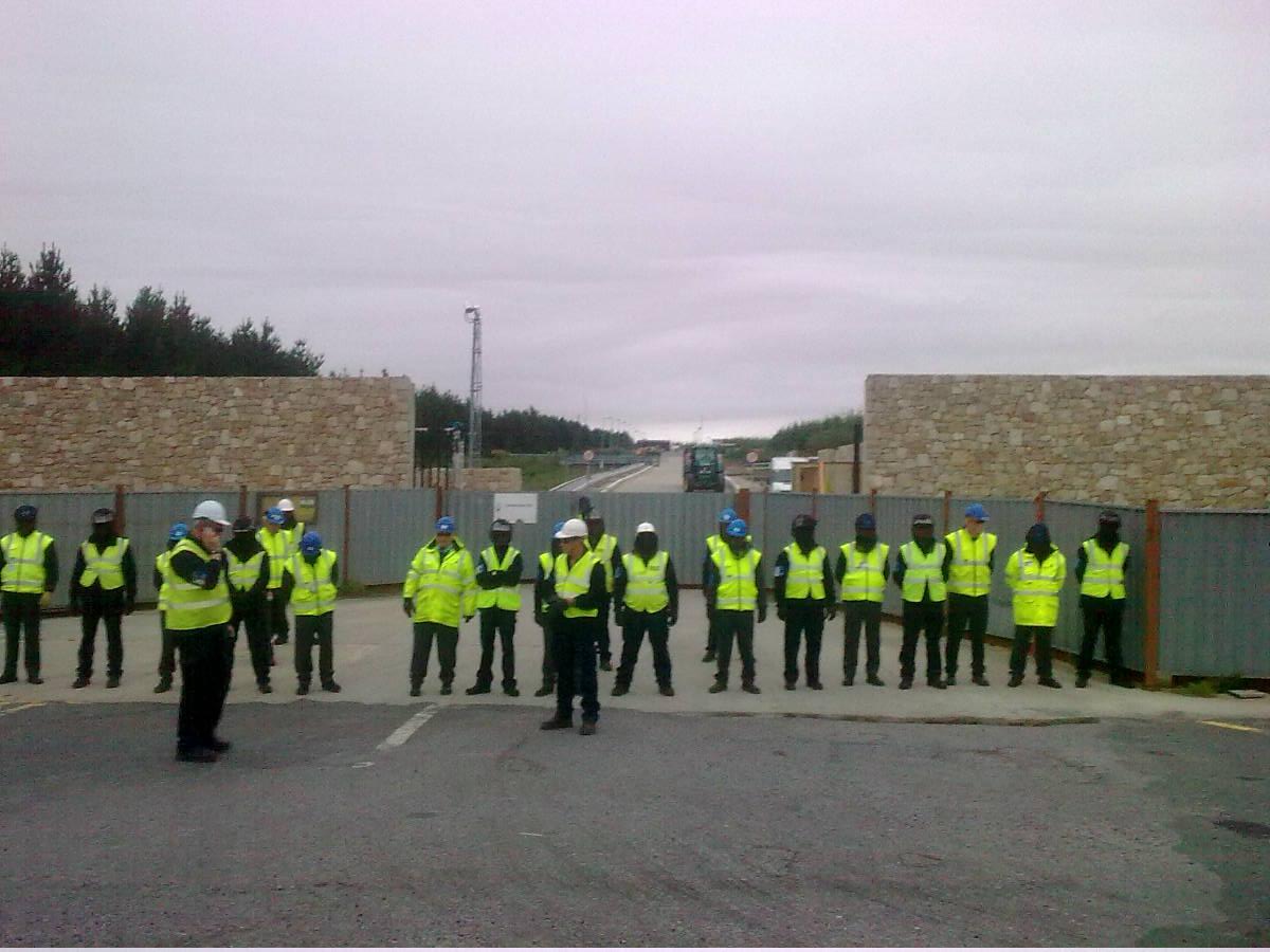 “As Shell prepared for today’s start of work, its security firm, IRMS, has been acting as a de facto private army in the area. Last Friday, more than 70 IRMS staff blocked the public road, with no Gardaí to be seen. Several campaigners were assaulted, with two requiring medical treatment.”