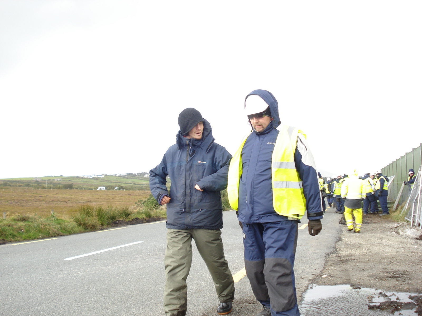 The workers and digger drivers walking away from the protesters