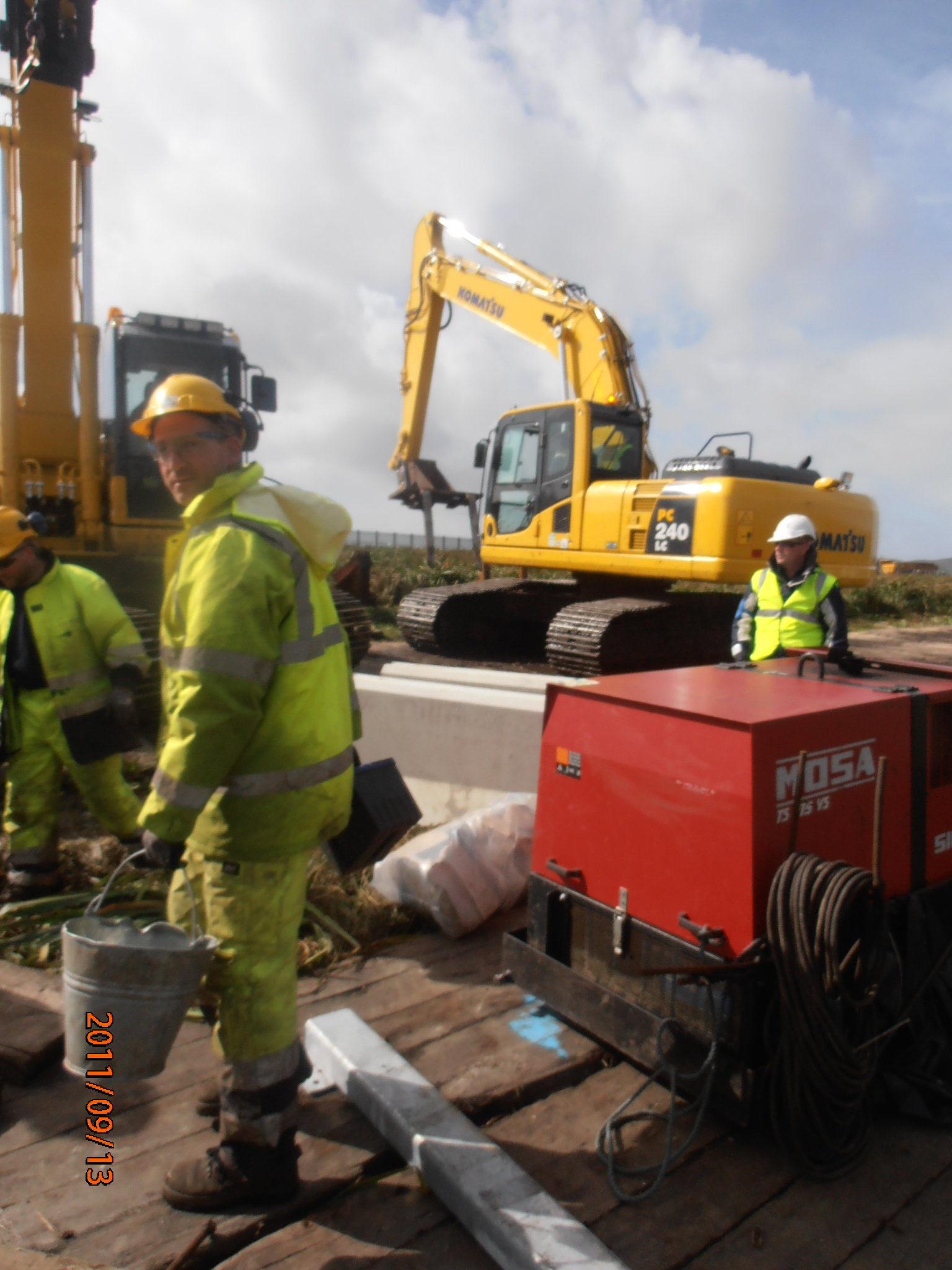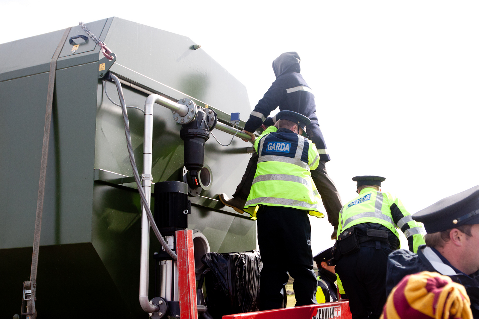 The workers packing up their kit- they stopped work as soon as the protesters showed up