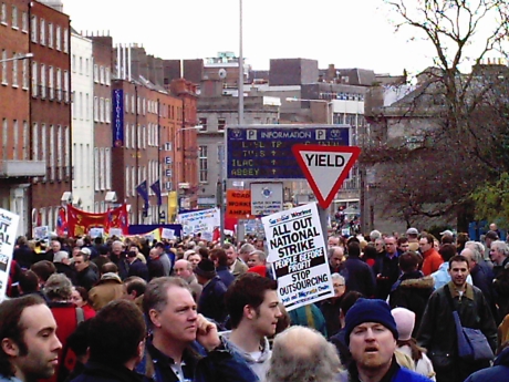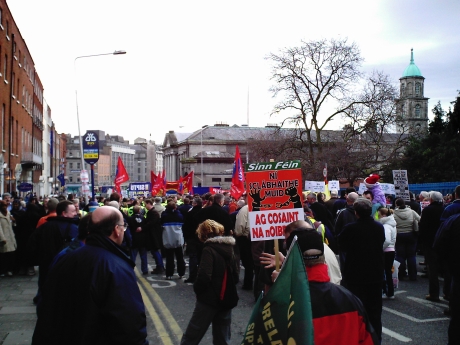 Today, December 9th, 150,000 workers took to the streets all across Ireland in the biggest working class mobilisation since the 1970's. They were protesting against the treatment of their fellow workers in Irish Ferries, who the company want to replace en masse with hyper-exploited immigrant labour, earning less than half the minimum wage. The protest's aims were more broadly defined by ICTU to include a general opposition to exploitation, racism and 'the race to the bottom'. it clearly struck a chord.