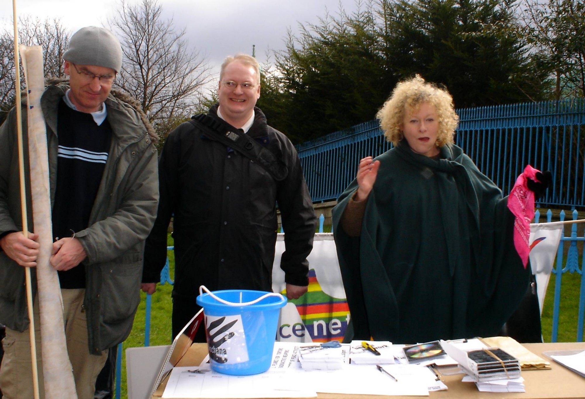 Our Good friends in the Justice Not Terror Coalition in Belfast, Northern Ireland are co-ordinating nonviolent resistance actions to the occupation of Iraq throughout 2006 in support of the Global Call to Action (http://globalcalliraq.org). The first was carried out on Monday, March 20th to mark the third anniversary of the Iraqi invasion (http://www.indymedia.ie/article/74977).