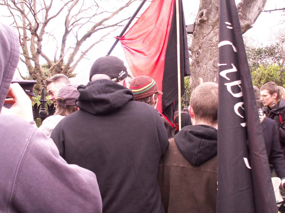 Yesterdays IAWM march from to A to B and back again had a healthy red and black bloc of about 80 to 100 people who decided the march route was too boring and headed off to put the focus where it belongs, ON THE STATE.