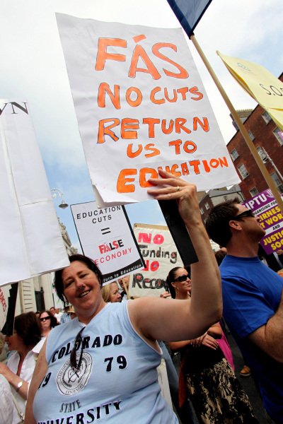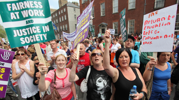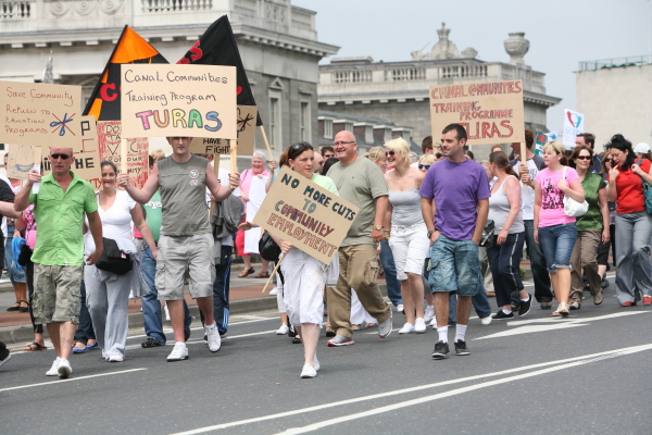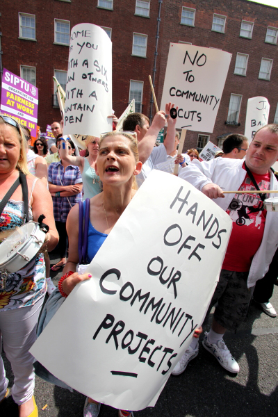 Community development has always been pulled by both radicalism and conservatism. On the one hand is can be s tool for managing poverty through various schemes that the Celtic Tiger allowed happen and it can offer hope and tools for change to communities to pull itself out of a vicious cycle of poverty, crime and drugs. Now the recession is well and truly here some of the most vulnerable communities who never experienced the economic boom are organising through their unions as workers. As the jobs massacres continues the community sector is facing the brunt of FF/Green Party cuts. Cuts affect communities in poorer areas more as community development was the only safety valve.