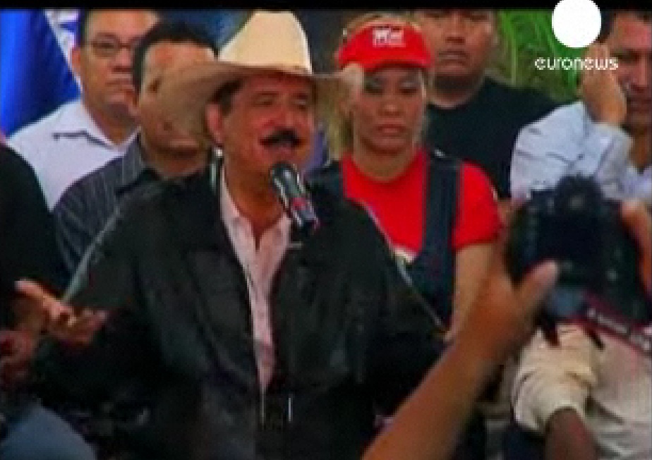 Seemingly he got all confident as soon as the OAS and specifically the USA voiced support for him and decided to go out of the presidential palace for the first time in a week. Whereupon he was bagged by soldiers ("brutally" he says) & flown to Costa Rica. From his new home he has called for pacific civil disobedience to the new military regime.