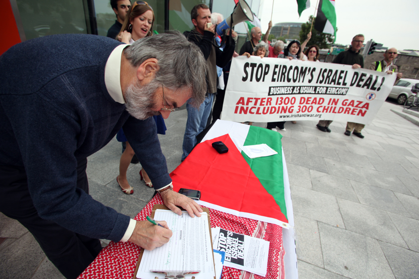 He concluded: “We would urge Eircom to look at the recent example of Veolia who have pulled out of operations in the Israeli-Occupied West Bank as a result of European-wide public campaigns against their collaboration with Israel. For Eircom to be seen to be in cahoots with Israel will only reflect badly on their own operations. Israel must understand that the there cannot be a return to a ‘business-as-usual’ attitude after its massacre in Gaza and ongoing brutal occupation of Palestine. All those who have signed the petition are calling upon Eircom to show their support for the rule of International Law and respect for human rights by refusing to enter into any contract with Amdocs.”