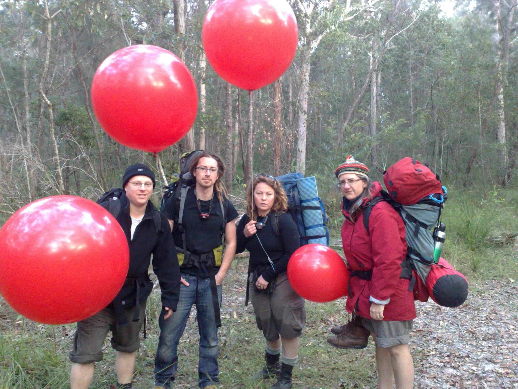 We plan to be inside the area for as long as possible, and are well prepared for a long stay. We have released a red helium balloon from the base.