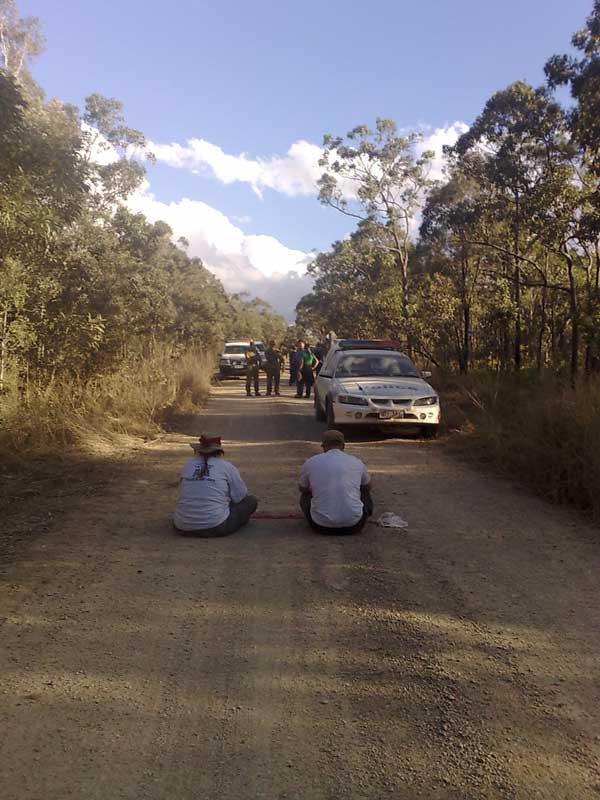 Australian Catholic Workers, Jim Dowling and Ciaron O'Reilly were arrested this morning while blocking a major military access road to the Talisman Sabre 09 exercises being held at Shoalwater, central Queensland, Australia.