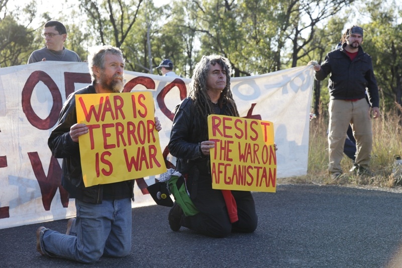 We come to Talisman Sabre to lock the gates, block the access road to the Shoalwater exercise area and read out loud the names of the dead of the war on Afghanistan - ten Australian, hundreds of U.K./U.S. troops, and thousands of Afghani civilians. We come to nonviolently resist this exercise and the expanding, escalating "Af/Pak War" on the Pushtun, Afghani and Pakistani peoples.