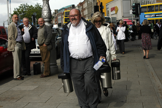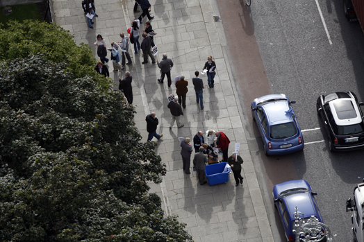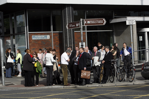 Staff began arriving after 8.30 to closed gates and picket lines. Upto eleven cars parked on the cycle lanes at the front waiting to get in while most civil servants waited at the bottom of Liberty Hall.