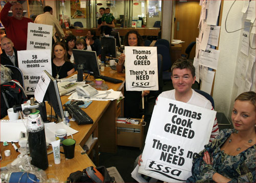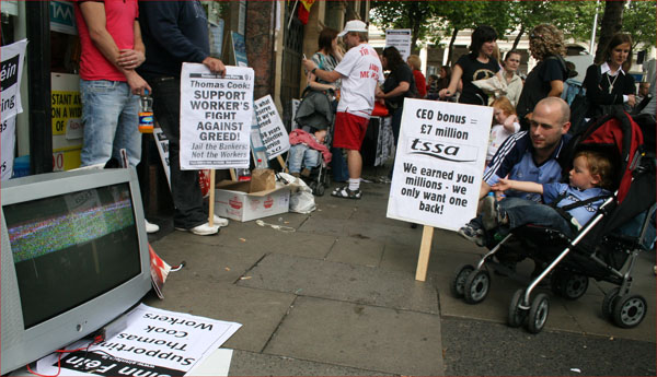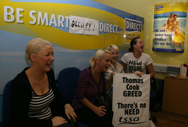 short report from inside and the street outside thomas cooks yesterday when the staff ejected the managers!