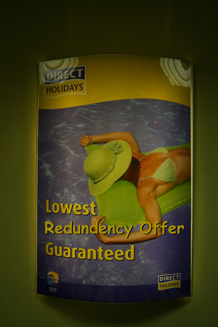 It's becoming clear that companies are exploiting the current climate of fear and economic rhetoric to implement business moves they wouldn't normally get away with in the name of increasing already reasonable profits. Many Travel companies have largely moved their businesses on to the internet and TV and were just itching to cut jobs in meatspace.