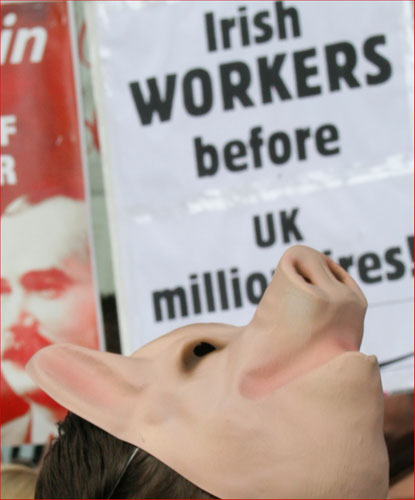 One rule for the bankers, developers, politicians and another for Thomas Cooke workers. The country is unofficially bankrupt and yet numerous Garda on over time can turn up at 5 in the morning to tackle a few brave women. When was the last time you were woken up at 5am. to the sound of Gardai raiding drug dealers homes. Immigrant traffickers or the Real IRA. Not a pip squeak! But then a massive show of force when some nutty judge goes OTT and orders the arrest of these dangerous militants who if they could get away with it would bring the country to "anarchy"! With NAMA and every dangerous banker and property developer still walking the streets I thought we already had anarchy. But no, that only threatens if a bunch of workers decide that they are going to occupy their place of work until they are treated with respect and not as some garbage to be disposed of at will! We need to stop our new rulers who have turned out to be worse than the british that ever occupied this country!