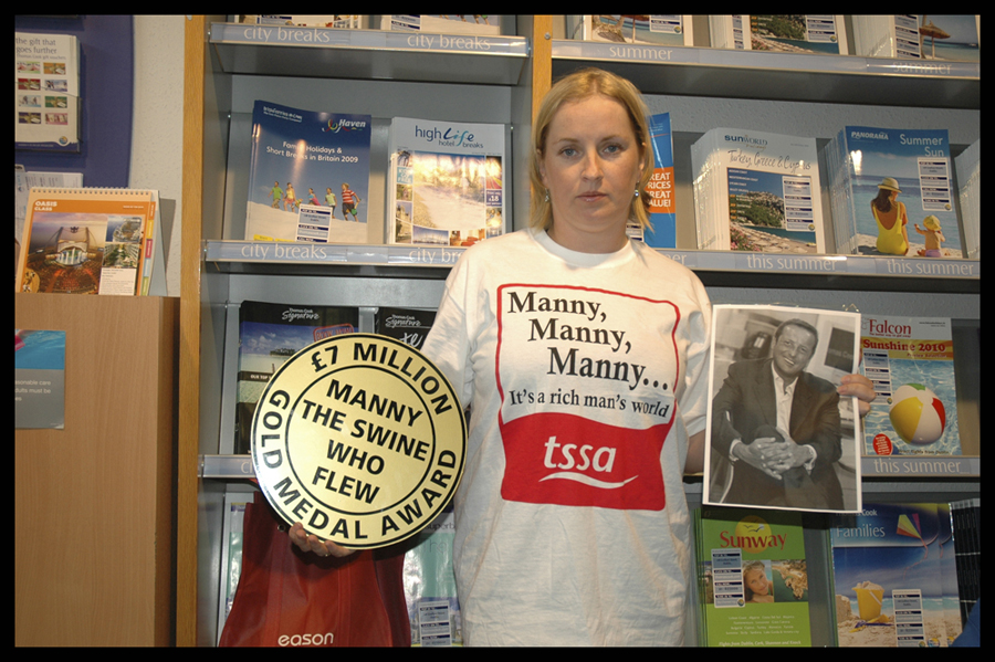 “One only needs to look at the stark difference in treatment of the CEO and the workers to see the agenda that is being pursued here. Thomas Cook’s CEO recently received a 34% pay rise and a seven million euro bonus for boosting profits by slashing thousands of jobs in Britain. Yet the low paid workers are to be thrown onto the dole, with minimum redundancy pay and no notice.