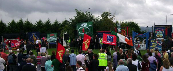 Secondly, there still seems to be a determined nationalist element on these protests. I've not been to any due to work but would definitley support the strikers. To what extent is nationalism a trend in this protest? I saw a tricolour flag on TV today and I heard Joe Monney on the radio this morning arguing along the lines "This is a UK firm in Ireland, Irish workers should not be treated like this in our own country". I personally think nationalism is a dead-end strategy. To what extent are the workers in Antwerp blacking the goods from Ireland? This is the way to success.