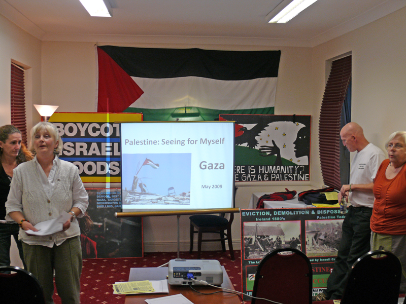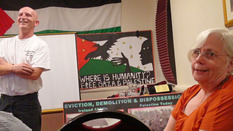 Last Thursday, 20th August to an eager audience in an overbrimming room of the Imperial Hotel, Eyre Square, Galway, with contributions from Jenny Graham, Susan Johnson and Derek Graham, husband of Jenny gave harrowing eyewitness accounts of the Israeli/US/EU created hell on earth that is called Gaza, in the case of Derek Graham, he told his story about being kidnapped at gunpoint in Mediterranean international waters along with 20 other Free Gaza Movement human rights activists, on board the Spirit of Humanity on a voyage of mercy,, forced into the Israeli port of Ashdod and then in tune with the Kafkaesque perversion and inversion of morality and reality that is the hallmark of Zionism, bizarrely questioned for violating Israeli territorial waters.