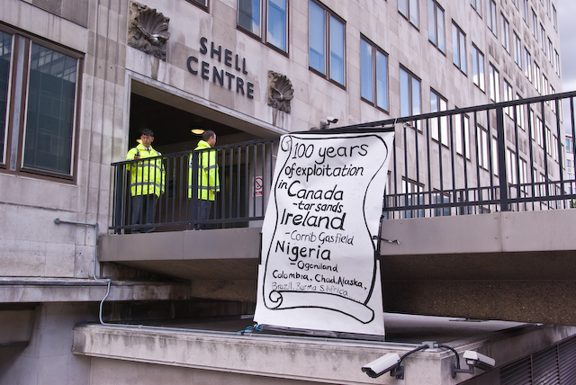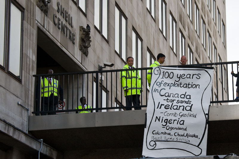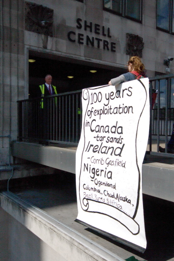 Climate campers supporting the Rossport campaigners protested outside Shell in London