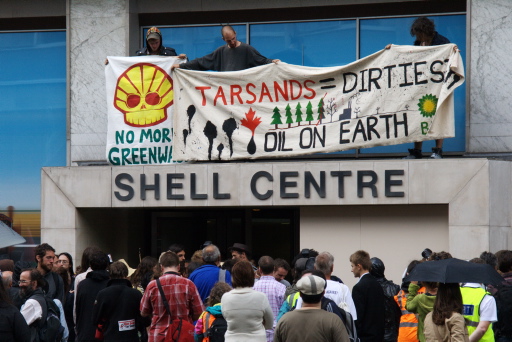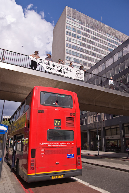 These pics were brought to you courtesy of one of your friends at the London Climate Camp who asked if I and another of the Camp Documentation Team photographers would join the Shell protest so we could take pics of the event for you as it was feared there wouldn't be any photo coverage otherwise.