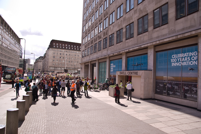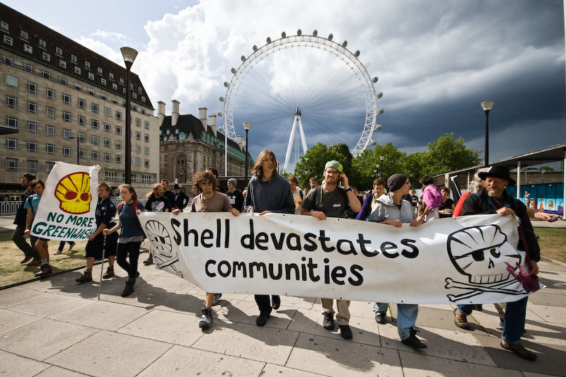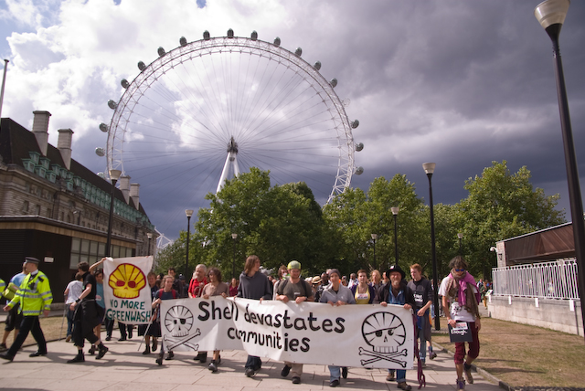 Photos from the Climate Camp demo as they walk from the BP offices to Shell in support of the Rossport campaign
