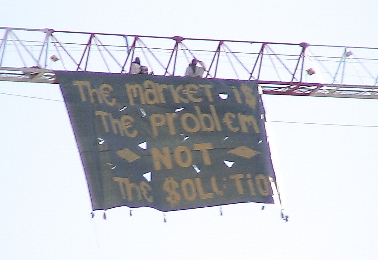 The Market is the problem - Not the solution (Banner drop on final day of BCN climate talks)