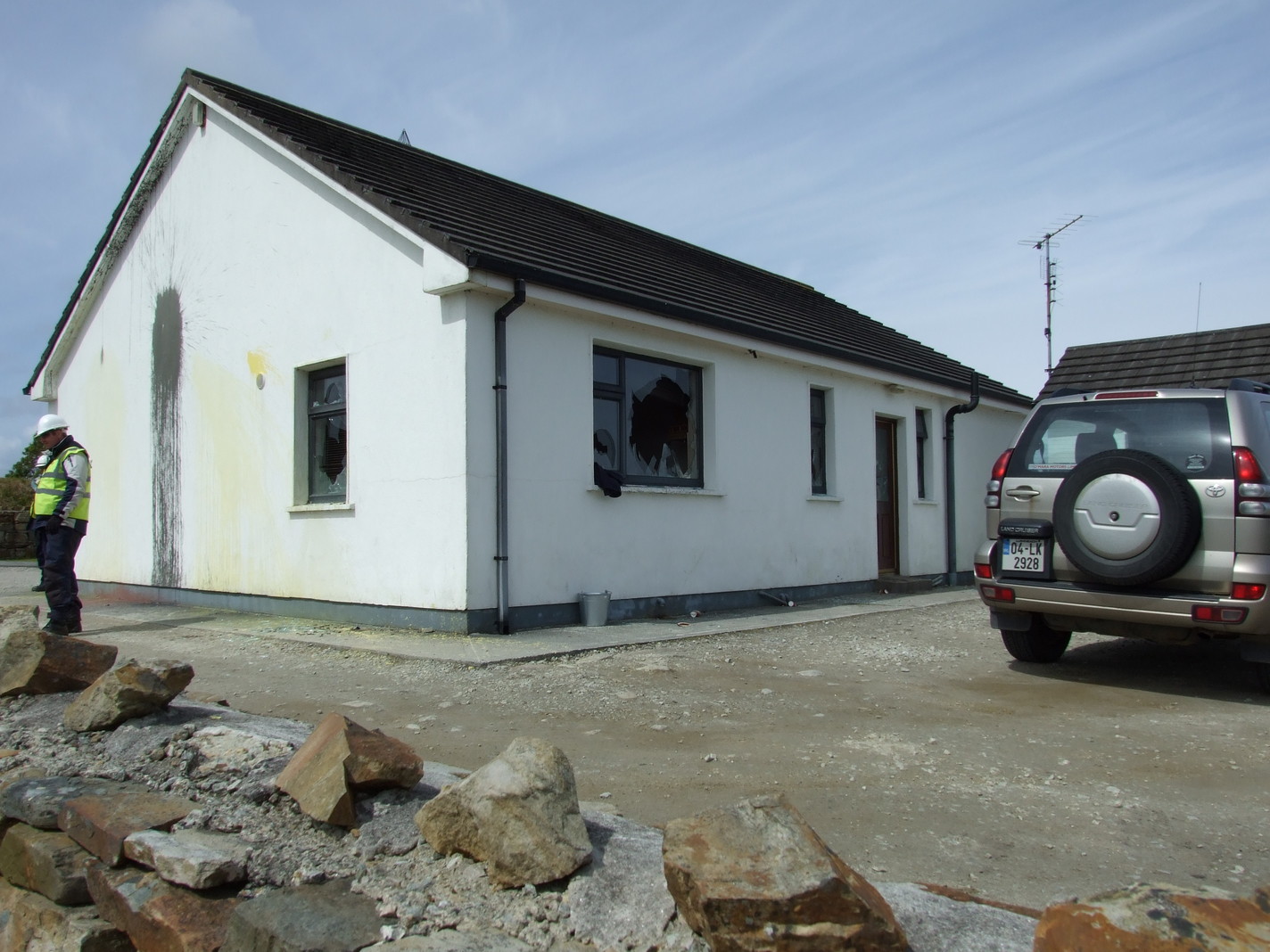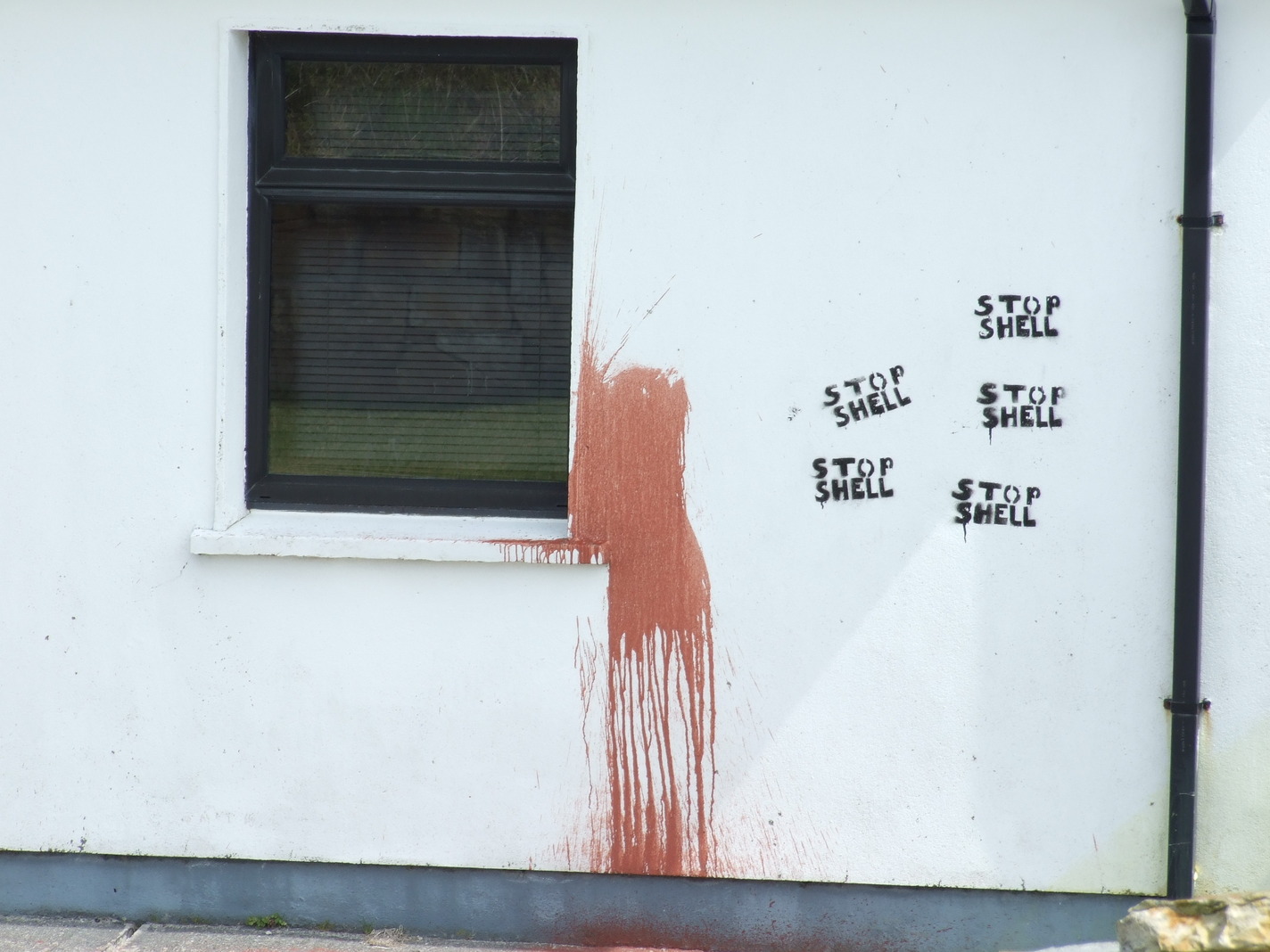 Shell bought this house and land attached from a local landowner, Johnny McAndrew. Johnny had protested along with other locals at May County Council's efforts to widen the road there for Shell. The protest added value to Johnny's land and he sold out when the price was right for him. Shell built a road through the land and have a compound there now to build the onshore pipeline. IRMS security now have use of the house.