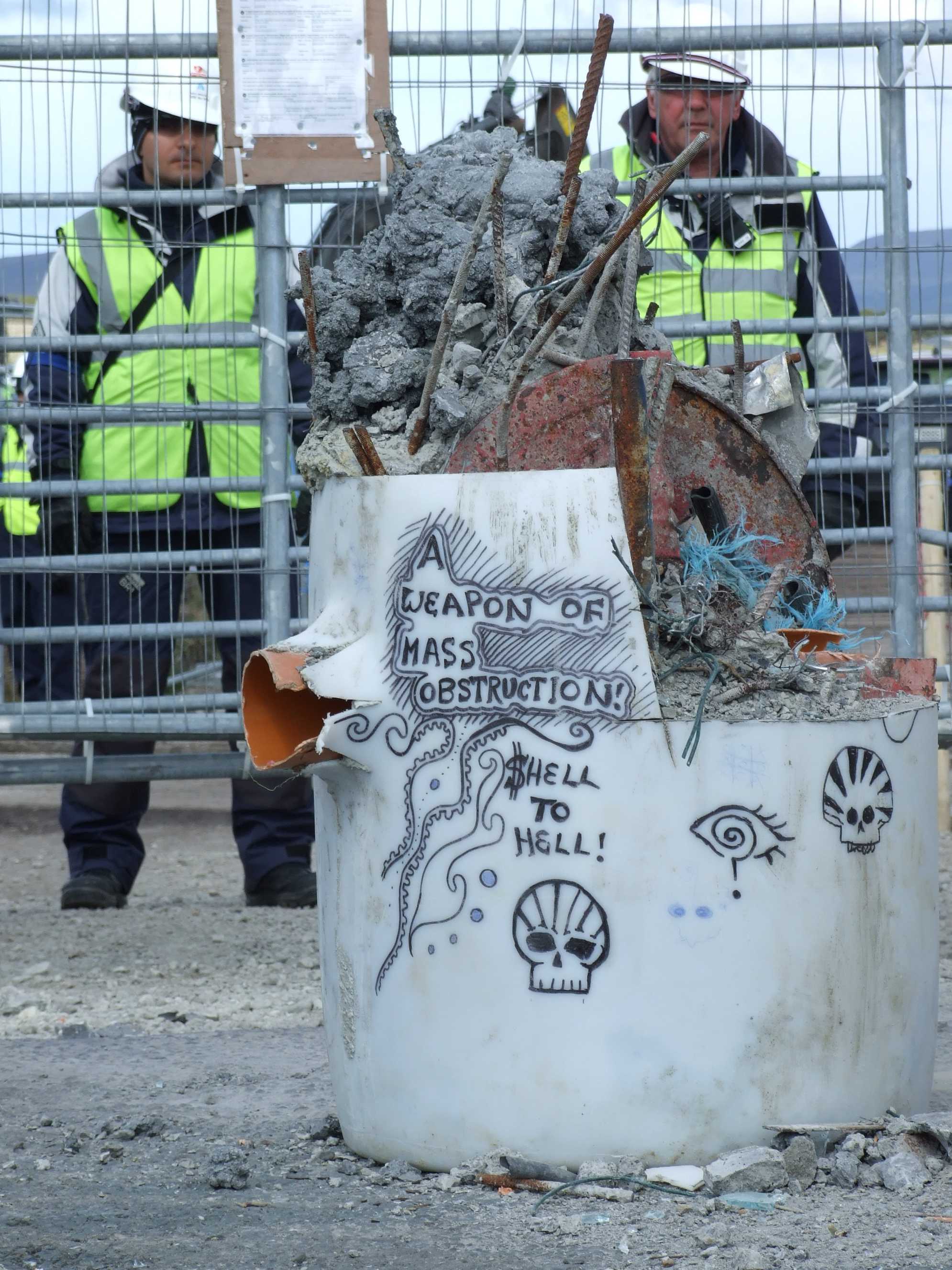 People swarmed everywhere, making good use of their access as security locked themselves down in their central compound behind lines of harris fencing, though that was no obstacle. Indeed, the only work that Shell did today was building a sorry pile of mangled fences.